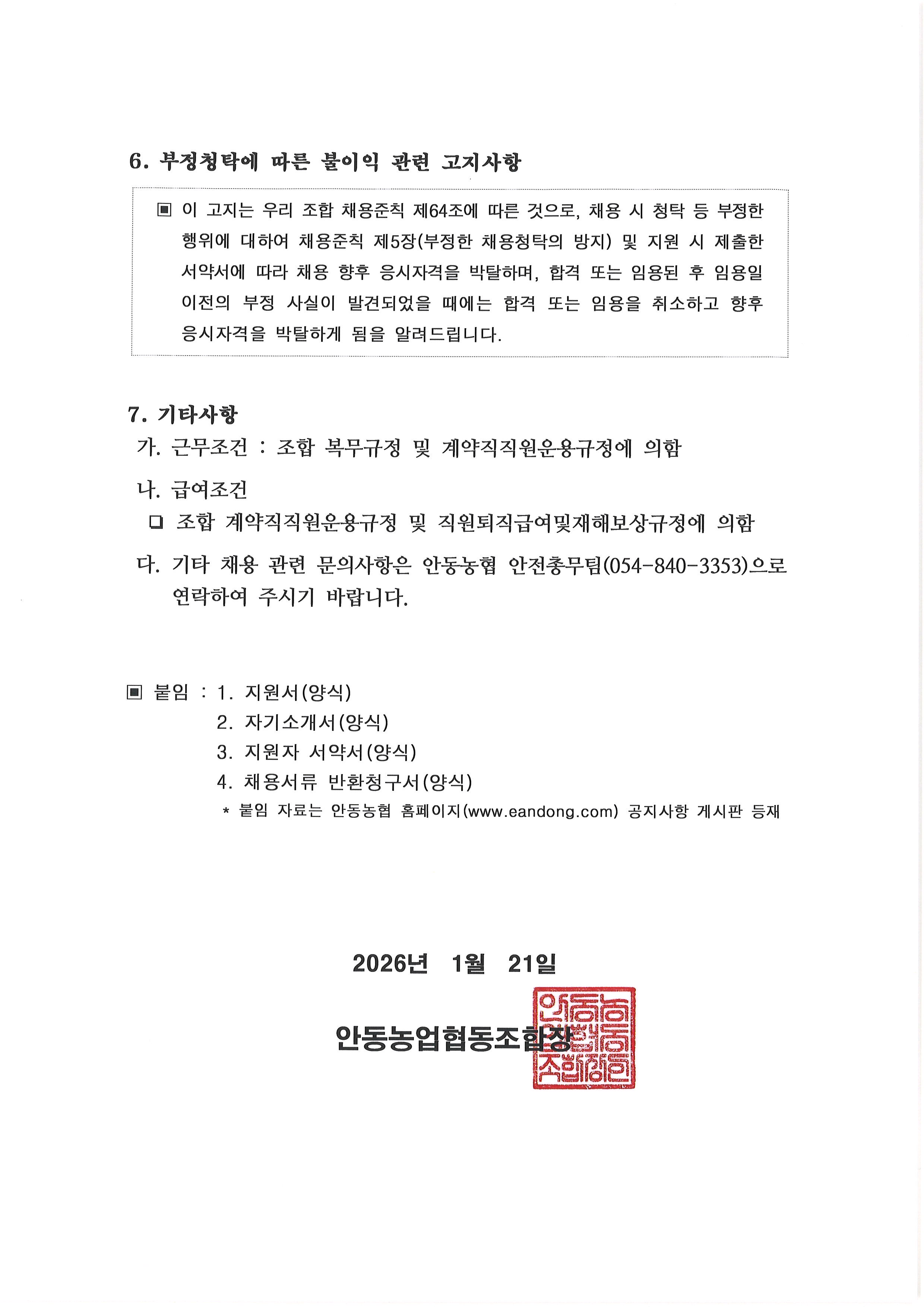 기간제근로자(일반계약직, 영업지원직(경제)) 신규채용 공고