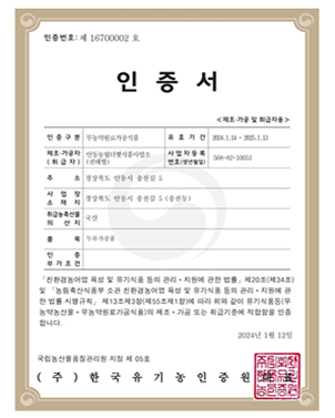 유기가공식품 인증서 |