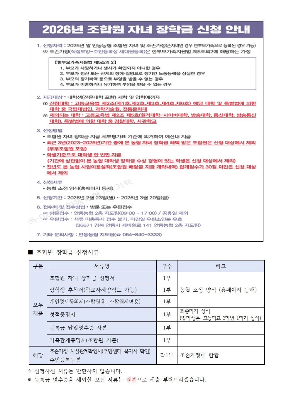 [붙임]2026년 조합원 자녀 장학금 신청 양식.pdf
