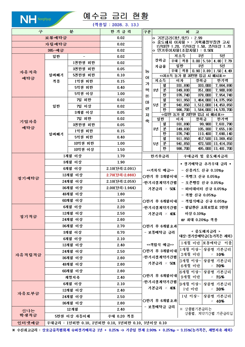 fnctId=bbs,fnctNo=796 수신금리 변경 알림<변경일 : 2026.03.13.> 수정일 2026.03.13 작성자 관리자 조회수 195 등록일 2026.03.13 첨부파일 첨부파일이(가) 없습니다.