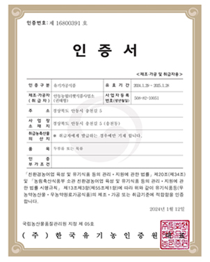 유기가공식품 인증서 |