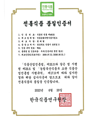 | 전통식품 품질인증서 |